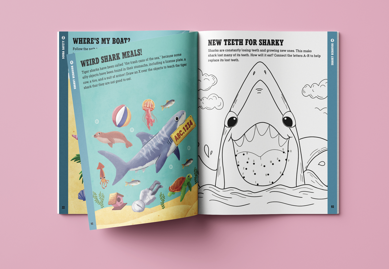 The friendly, playful shark artwork is at the heart of the book’s appeal, guiding children through the pages with warmth and energy. Bright, welcoming illustrations help showcase the fabulous puzzles and invite little readers to explore, interact, and enjoy every challenge. It’s a joyful, beautifully illustrated activity book that turns learning into an adventure, and one we’re proud to have contributed to.